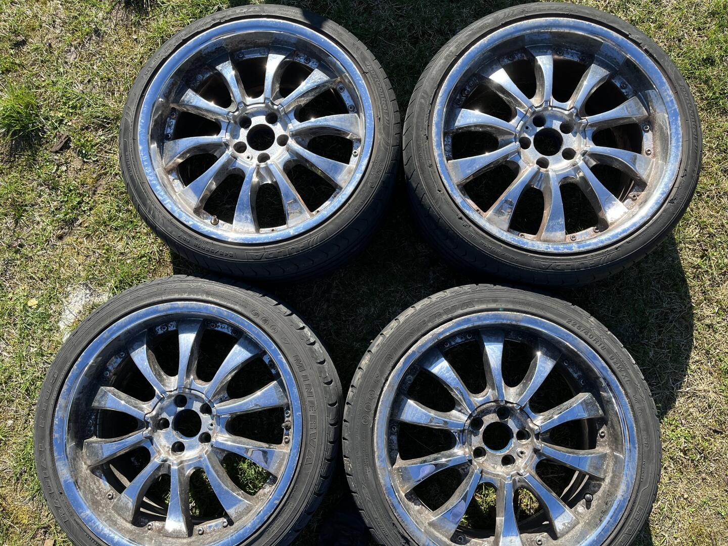 Sprzedam komplet opony wzmocnione z alufelgami przód 225/40R 18 tył 245/35R 18 5x120 pierścień 5x100 ET40